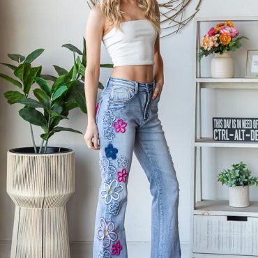 Embroidered Boho Flare Jeans: Women’s Denim Bell Bottoms