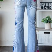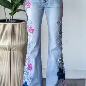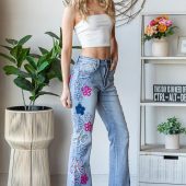 Floral Embroidered Flare Jeans High Waisted Light Wash
