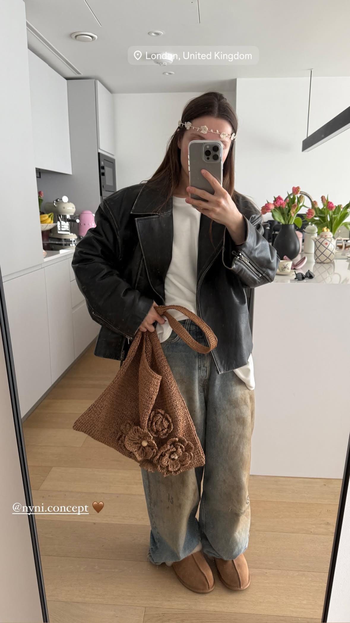 A handmade woven shopper bag crafted from lightweight yet durable cellulose ensures wear resistance and comfort in use. The voluminous knitted flowers add a special charm to the bag. With its spacious design, the shopper is perfect for everyday use, shopping, travel, or beach outings.